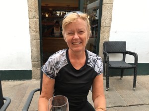 I decide to head for something to eat since I will be in transit for a bit and head to an Italian place I have visited after each Camino. As I am walking through the narrow streets…I hear “Cam!” It’s Miriam from Germany. She’s Looking great, was just arriving this minute and was walking to the Pilgrim Office…. We chatted for a couple of minutes as people buffeted us….and after a great big hug were were both on our ways.